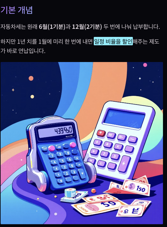 기본 개념 자동차세는 원래 6월(1기분)과 12월(2기분) 두 번에 나눠 납부합니다. 하지만 1년 치를 1월에 미리 한 번에 내면 일정 비율을 할인해주는 제도가 바로 연납입니다.