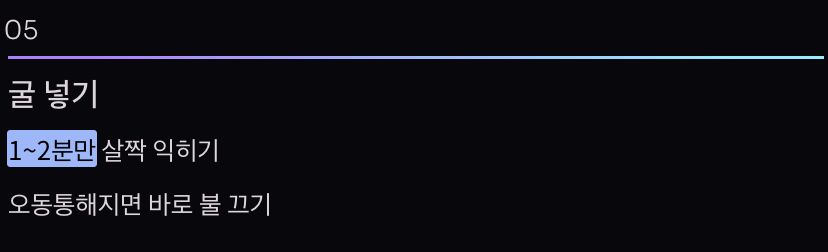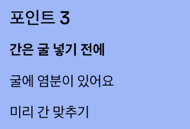 - 굴은 마지막에 1~2분만 익히기