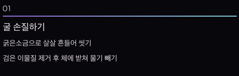 - 굴은 소금물에 살살 씻기