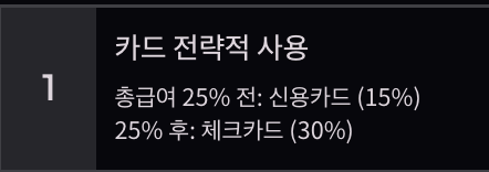 25% 넘은 후 → 체크카드나 현금영수증 쓰기 (공제율 높음)