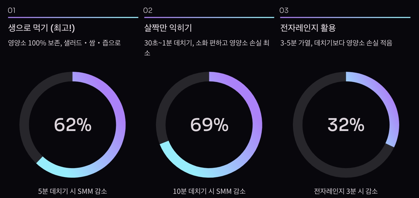 - 5분 데치기: SMM 73.26mg (62% 감소)