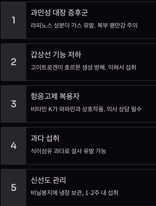 Q. 매일 먹어도 되나요? 네! 단, 갑상선 질환이나 과민성 대장이면 적당히 드세요.