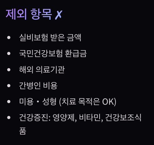 - 남편 의료비 150만원 - 3%(180만원) = 불가