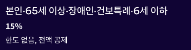 - 본인·65세 이상·장애인·6세 이하: 15% (한도 없음)