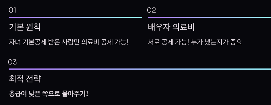 - 자녀: 남편 기본공제 시 남편만 가능