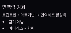 - 트립토판·아르기닌 → 면역세포 활성화