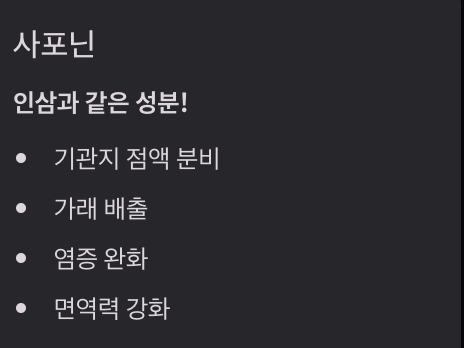 - 사포닌 → 면역력 증강