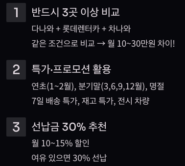 제 후배는 다나와에서 비교 후 롯데렌터카 특가로 계약했어요. 같은 조건인데 월 12만원 절약!
