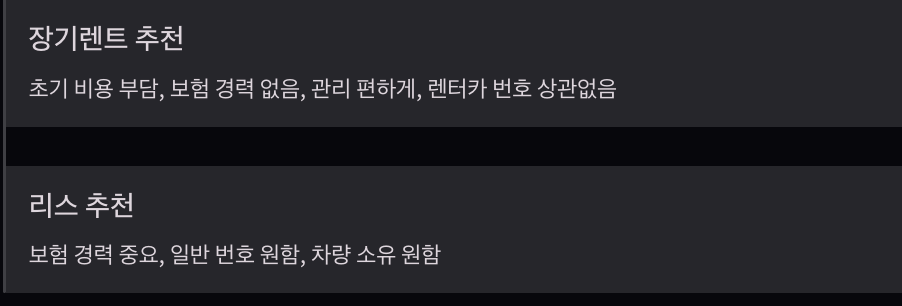 - [ ] 포함 항목 (세금, 보험, 정비)