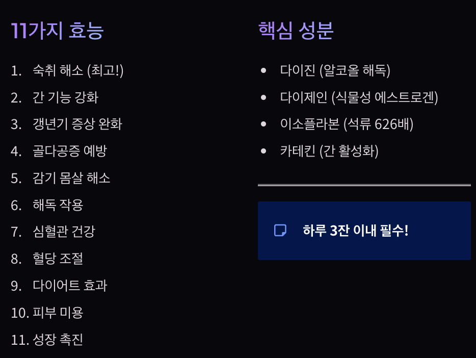 다이진·다이제인 성분이 숙취·갱년기·간 건강까지! 하지만 과다 섭취 시 간 손상 주의!