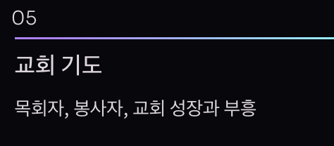 담임목사님과 모든 교역자님들에게 성령의 충만함을 더하여 주시고, 말씀을 전할 때마다 능력이 함께하시옵소서. 각 부서에서 헌신하시는 모든 봉사자들을 축복하여 주시옵소서.