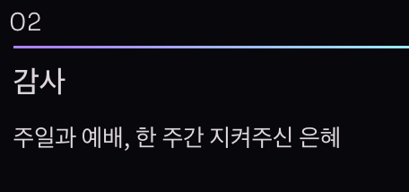 오늘 이렇게 주님 앞에 예배자로 나아올 수 있음에 감사드립니다. 한 주간 건강을 허락하시고, 가족과 일터를 지켜주신 하나님, 주님의 크신 은혜에 감사와 찬양을 드립니다.